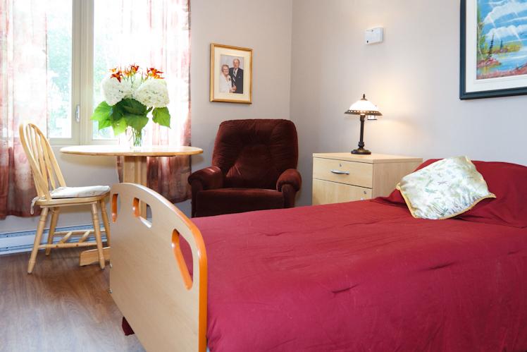 Les résidents disposent de grandes chambres individuelles aménagées de tous les meubles nécessaires. Chaque résident est invité à personnaliser sa chambre en apportant divers objets qui rendront le lieu plus familier et, s’il le désire, en apportant son propre fauteuil de lecture. Les chambres disposent toutes d’un thermostat apportant un confort appréciable l’hiver; elles ne sont pas climatisées. Toutefois, chaque résident peut se procurer un climatiseur qui sera installé par le personnel de la maison. Les caractéristiques de l’équipement sont fournies à l’arrivée du résident.