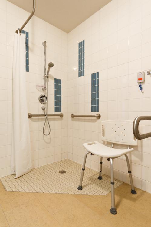 Chaque résident dispose d’une chambre individuelle munie d’un lit électrique à hauteur variable ainsi que d’une salle de toilette privée avec une douche de plain-pied adaptée aux personnes à mobilité réduite.